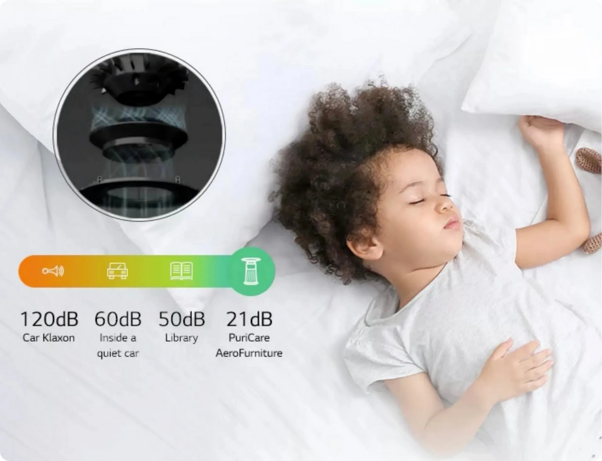 Ensure the air around you is always fresh and breathable with LG’s PuriCare™ 360° HEPA filter.