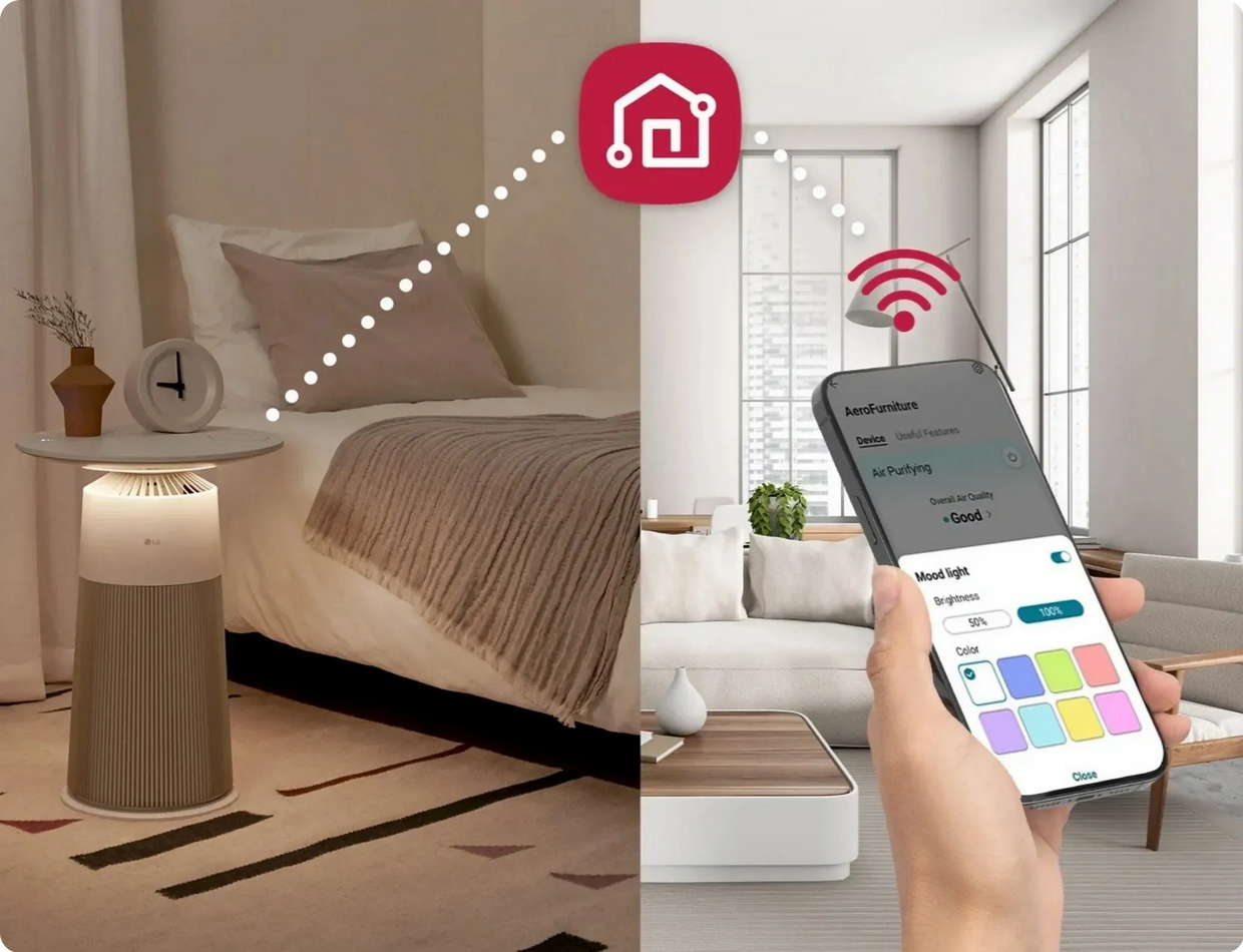 Connect to built-in WiFi and control AeroFurniture from anywhere with the ThinQ app.