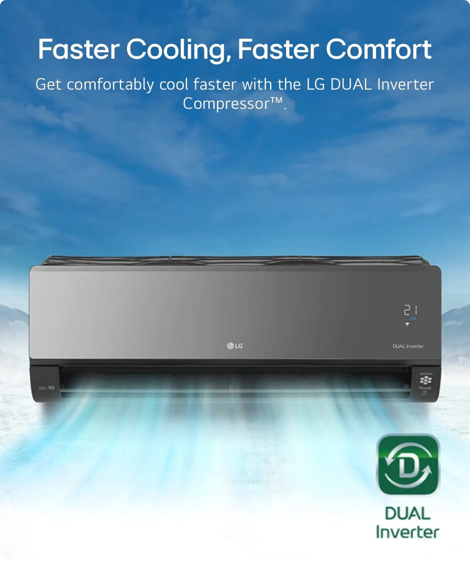 Enjoy a durable air conditioner with an ability to withstand voltage fluctuation*. *LG Internally tested "rated voltage ± 30%" fluctuation and it may vary depending by environment.