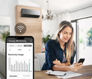 The LG ThinQ™ app continuously monitors your air conditioner. Whether it’s everyday maintenance or something else, the app allows you to easily monitor energy usage