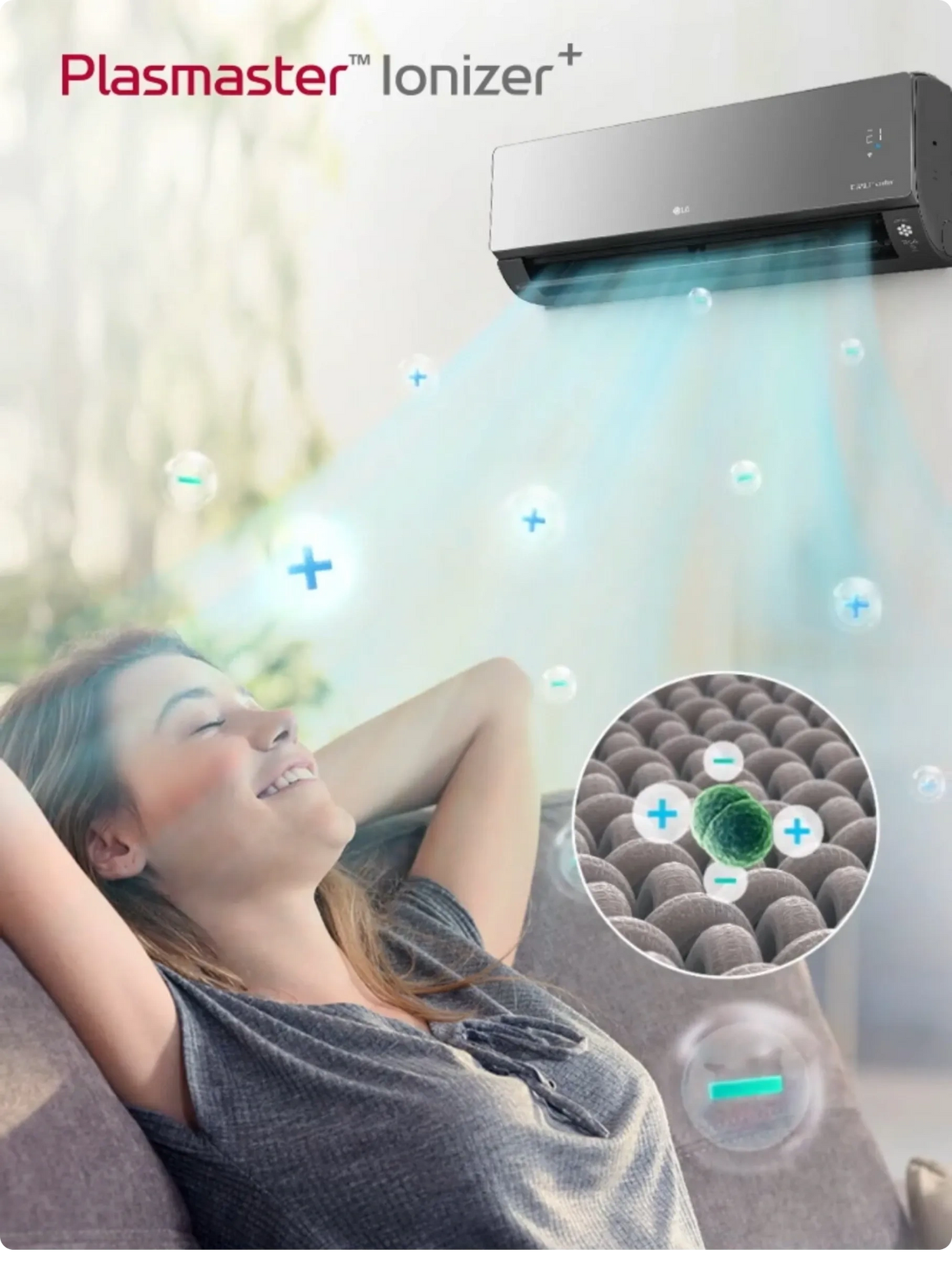 *The TÜV Rheinland has verified that the Plasmaster™Ionizer++ removes up to 99.9% of adhering bacteria (Staphylococcus aureus, Escherichia coli and Pseudomonas aeruginosa) in the test room of 30m³. The model tested was SW09BAJWAN. It is not about the efficiency in removal of bacteria in the air conditioner and the efficiency in removal of bacteria may differ from the actual use conditions.