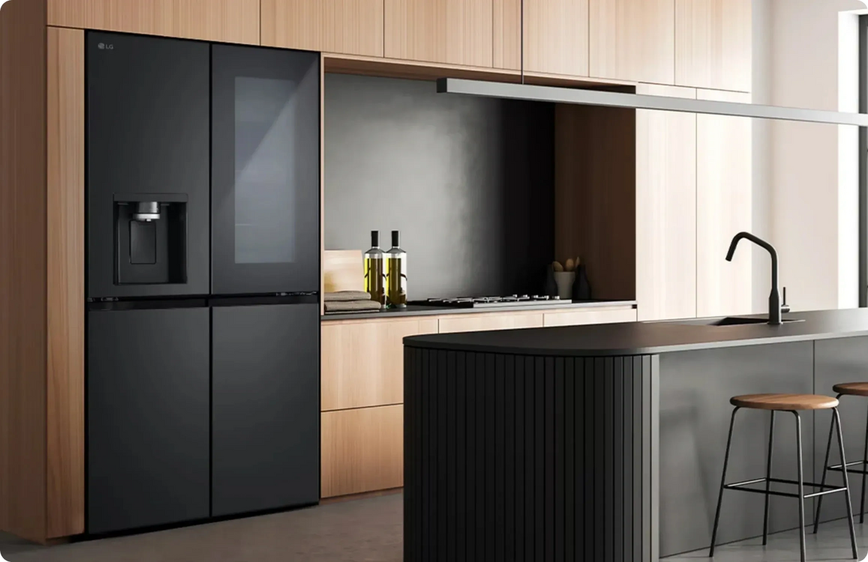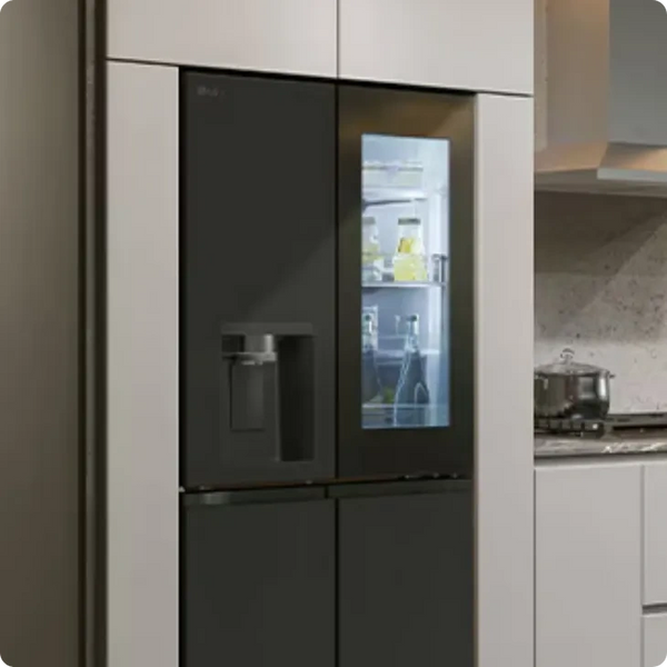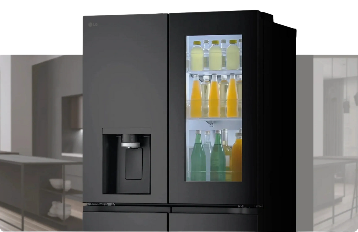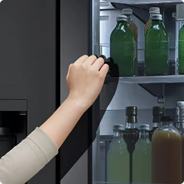 Knock twice on the newly designed Black Glass InstaView™ door and it lets you see inside without opening the door.