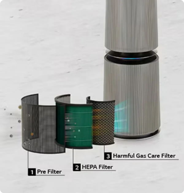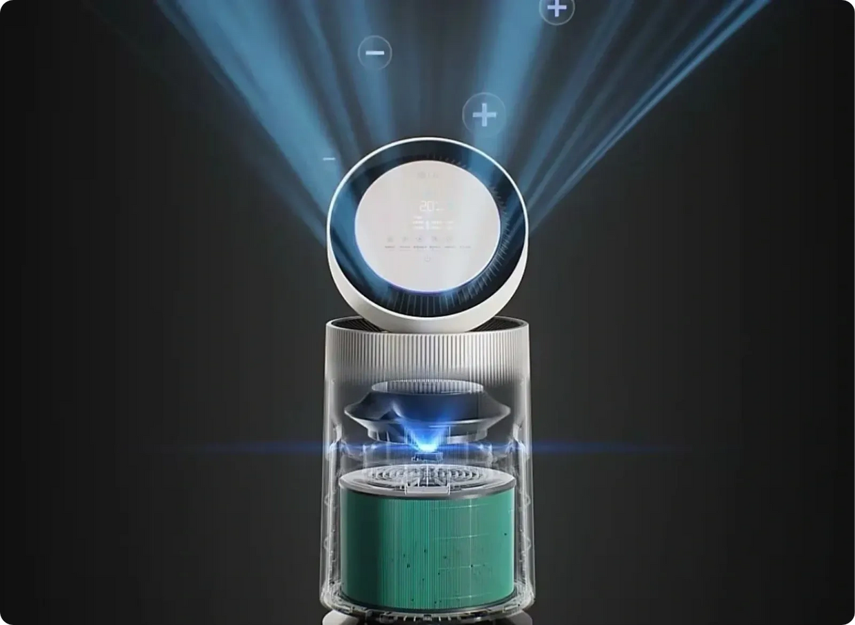 LG PuriCare™ purifies the air 360˚ around you, in every direction, no matter where you place it.