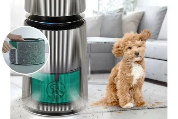 The photocatalytic filter, boosted by light, combats 55% more pet odors, ensuring your home stays fresh and clean.