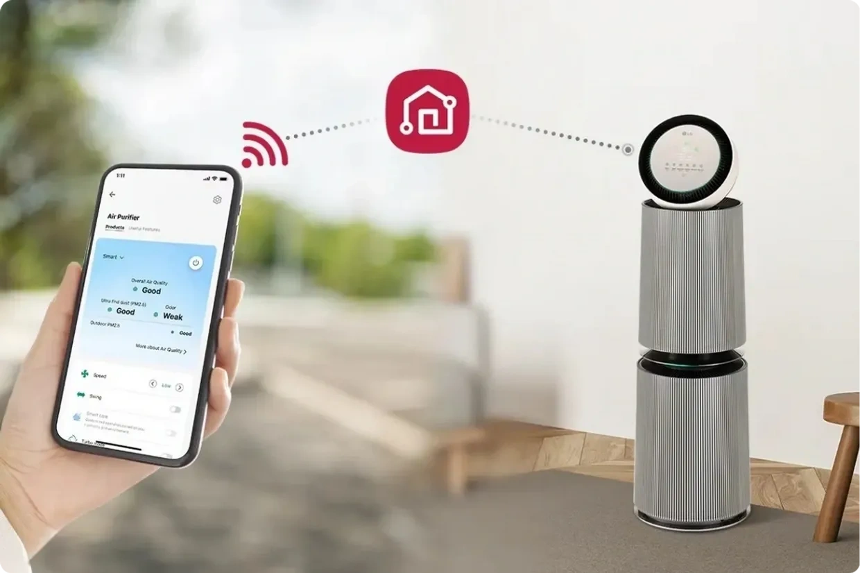 Use LG ThinQ™ to turn on PuriCare™ remotely so cleaner air awaits your family-even on dusty days.