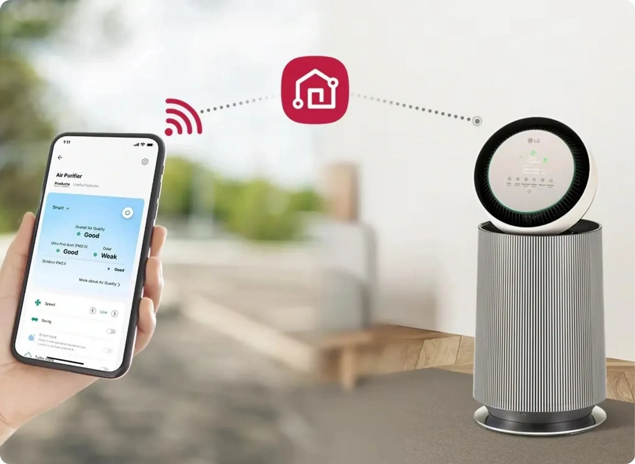 Use LG ThinQ™ to turn on PuriCare™ remotely so cleaner air awaits your family-even on dusty days.