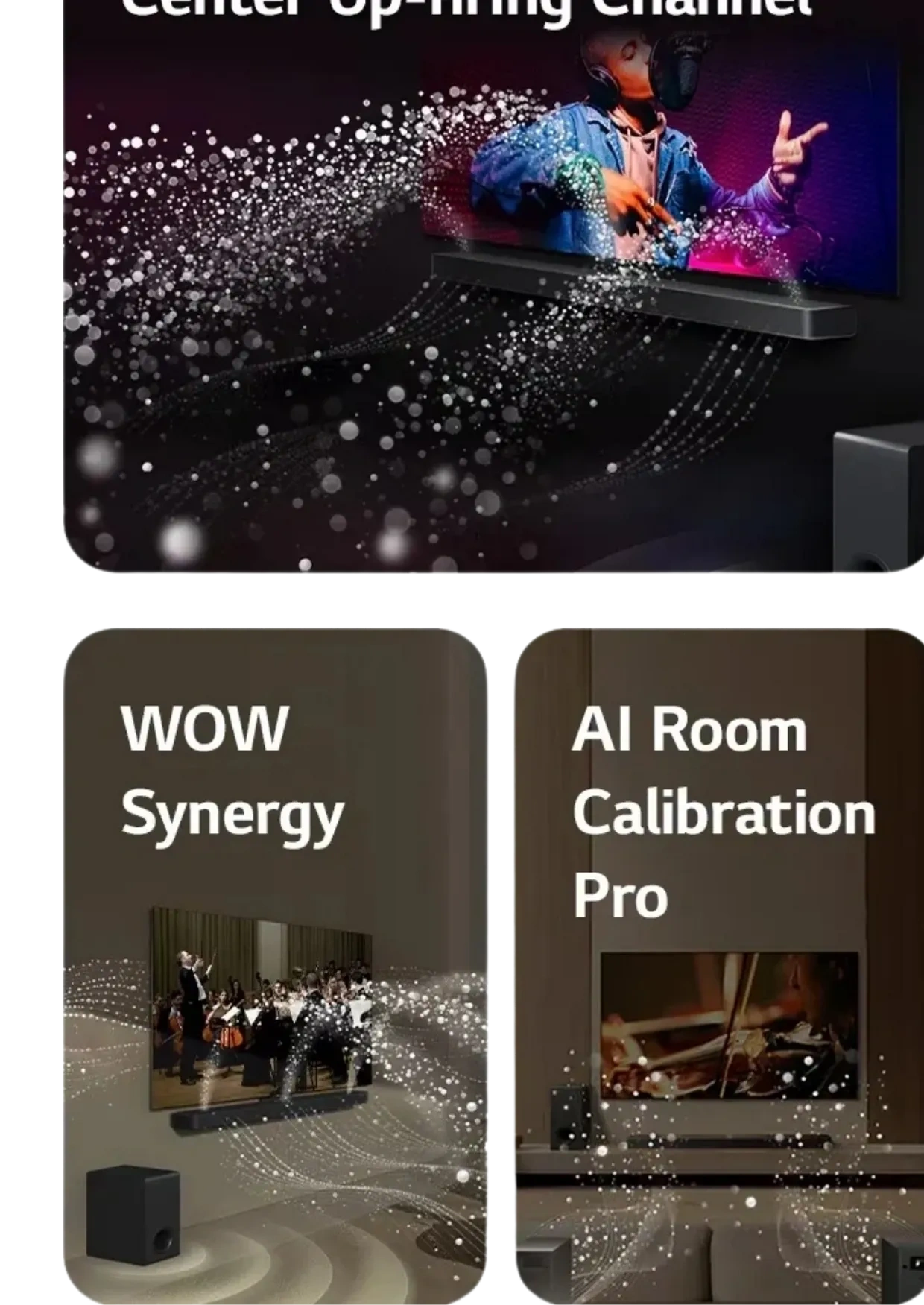 The Center Up-firing Channel makes sound feel like it's coming from the middle of your LG TV for a lifelike sensation.