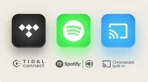 Stream from your favorite platforms without compression through lossless HD support for Spotify Connect, TIDAL Connect, and Chromecast.