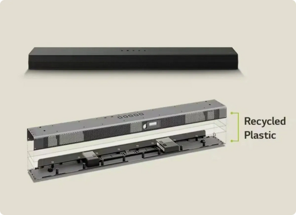 LG Soundbars use recycled plastic use on top and bottom parts. Proof we're taking a more eco-minded approach to soundbar production.