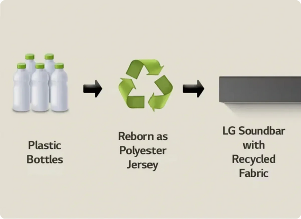 ALL LG Soundbars are thoughtfully desinged with careful consideration to ensure a high percentage of reclaimed materials.The Global Recycled Standard certifies that the polyester jersey fabric is made from plastic bottles.
