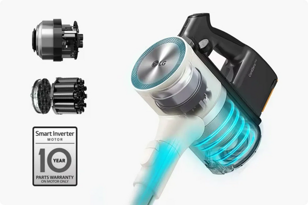 The Smart Inverter Motor™ is a brushless design with minimal mechanical friction during operation. This improves the durability of the motor enabling LG to offer a 10 year parts warranty on the motor.