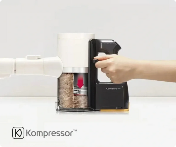 The LG KOMPRESSOR™ technology saves you time by compressing dust and hair collected in the bin. With the compaction of dust and hair (by up to 2.4 times the uncompressed capacity*) you need to clean out the bin less often. When it is time to empty, the Kompressor lever is simply pushed down with the door open to clear the contents.