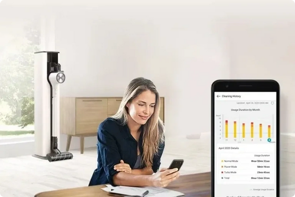 "With a compatible smartphone and LG ThinQ™ app you can have product monitoring, filter cleaning guide, cleaning history management, push notification