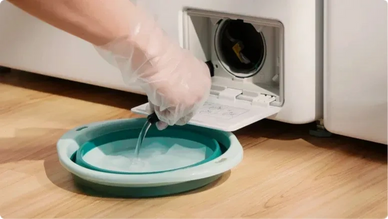 Pour 50ml of tub cleaner detergent into the drum and start the tub clean function to sanitize the inside of the washer tub.