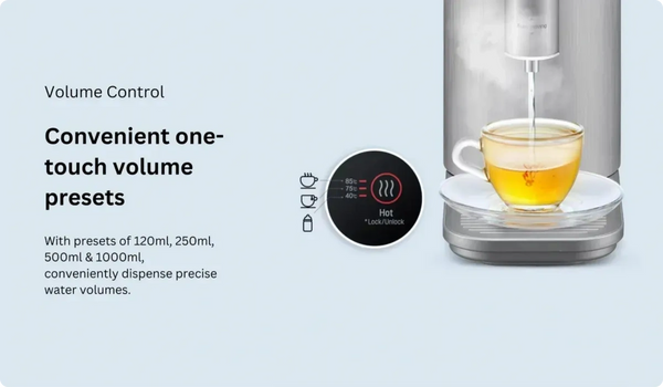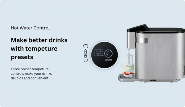 Auto sterilization. High-temperature automatic sterilization without the high costs of a service call. You can clean the internal stainless-steel pipes and outlet, removing 99.99% of germs with just the touch of a button.