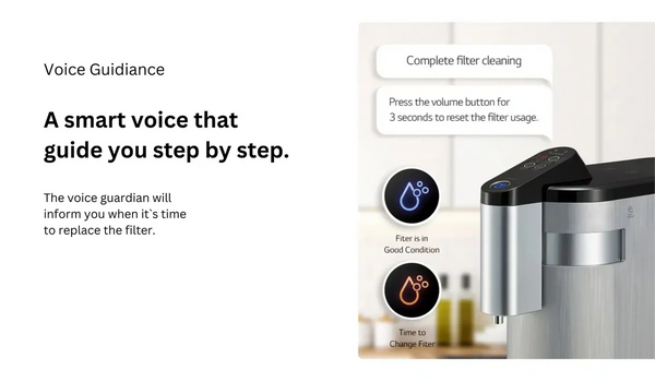 Even when muted, the voice instructions will continue to be provided during water outlet sterilization, water pipe sterilization, and filter change for safety reasons.