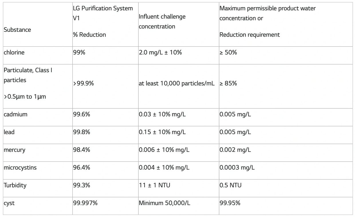 The concentration of the indicated substances in water entering the system was reduced to a concentration less than or equal to the permissible limit for water leaving the system as specified in NSF/ ANSI Standard 42 and Standard 53.